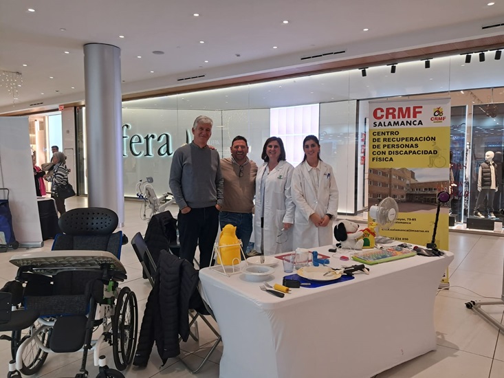 Por la tarde: Accesibilidad para todos y todas - Feria de Asociaciones. En el horario de 17:00 a 20:30 horas, el Centro Comercial El Tormes acogió una Feria de Asociaciones, donde cada entidad participante presentó sus iniciativas y productos de apoyo, en el caso del CRMF Salamanca se presentó el Gabinete de Accesibilidad, así como un variado y diverso número de productos de apoyo. Este espacio dinámico permitió a los visitantes: descubrir soluciones innovadoras que mejoran la accesibilidad y calidad de vida de las personas con discapacidad y participar en demostraciones interactivas que destacaron los avances tecnológicos y sociales en materia de inclusión.