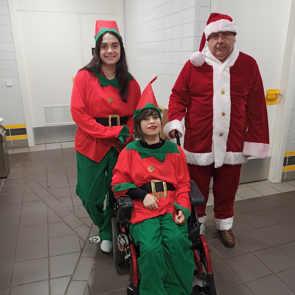 La entrega de regalos del Amigo Invisible fue, sin duda, uno de los momentos más esperados, cargado de complicidad, risas y emoción. Contó con la colaboración especial de las últimas incorporaciones al centro: Ricardo Ortiz, responsable del Área I; Elena Marcos, terapeuta ocupacional; y Sandra López, alumna, quienes contribuyeron a hacer de este momento algo aún más especial.
